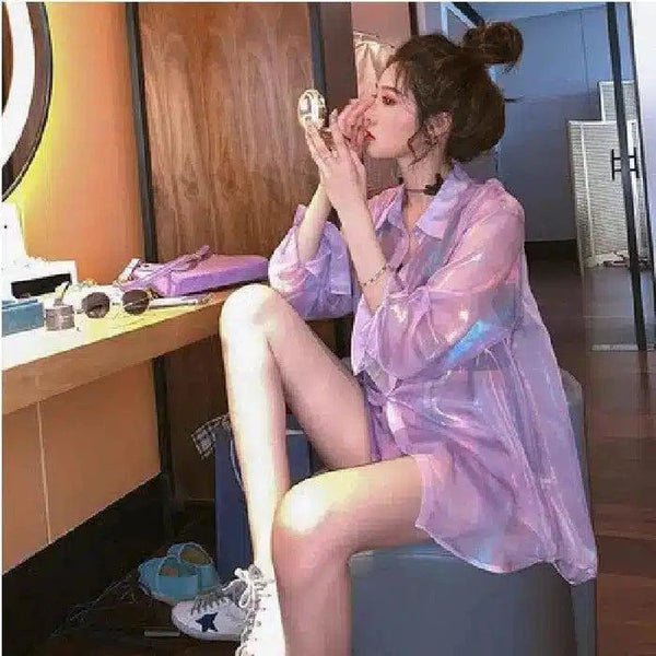- 衣服の種類:薄手のオーバーサイズシャツ 袖丈:長袖 ネックライン:クラシックカラー フィット:リラックスフィット、ややオーバーサイズ スタイル スタイル:トレンディでモダンな、遊び心のある透け感のあるデザイン。