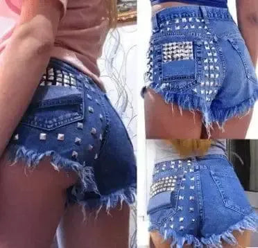 女性のリッピングジーンズバギーショーツリベットホットパンツ