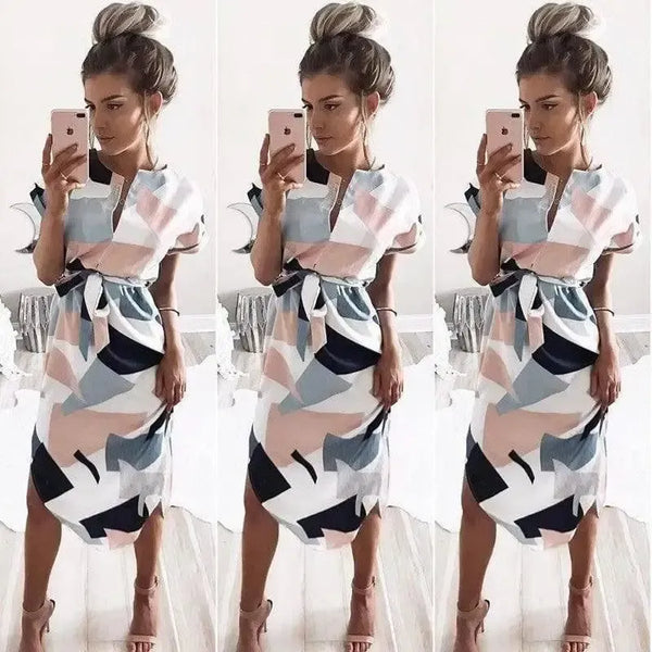 Vネックプリントドレス