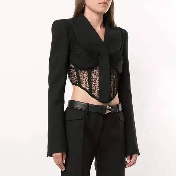レディース・レース・ディテール・クロップド・ブレザー・ジャケット