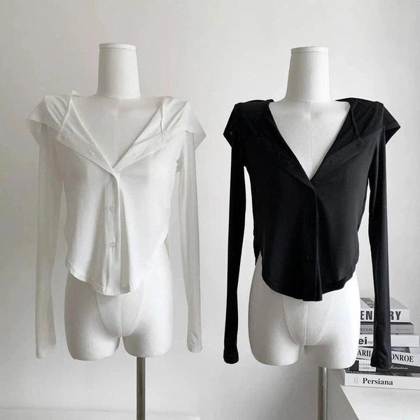 - 衣服の種類:女性用ボディスーツトップス 袖丈:長袖 ネックライン:襟付きVネック、ラペルのディテール