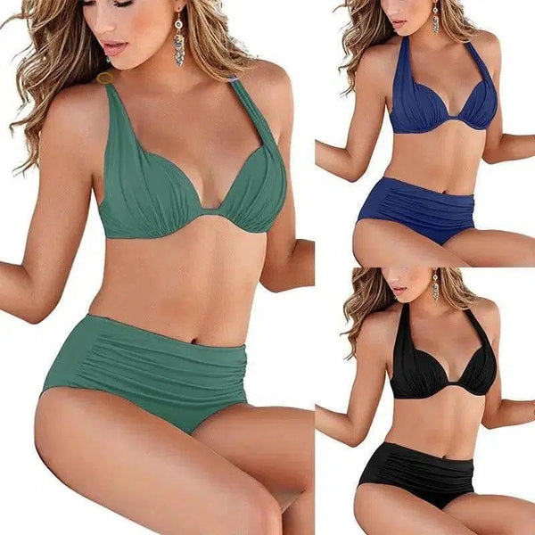フリルアンダーワイヤービキニ無地ハイライズ水着