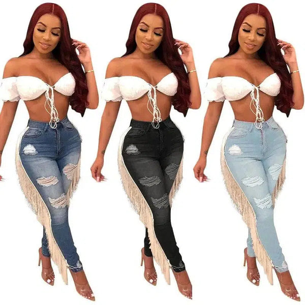 カジュアルなフリンジ付きジーンズ