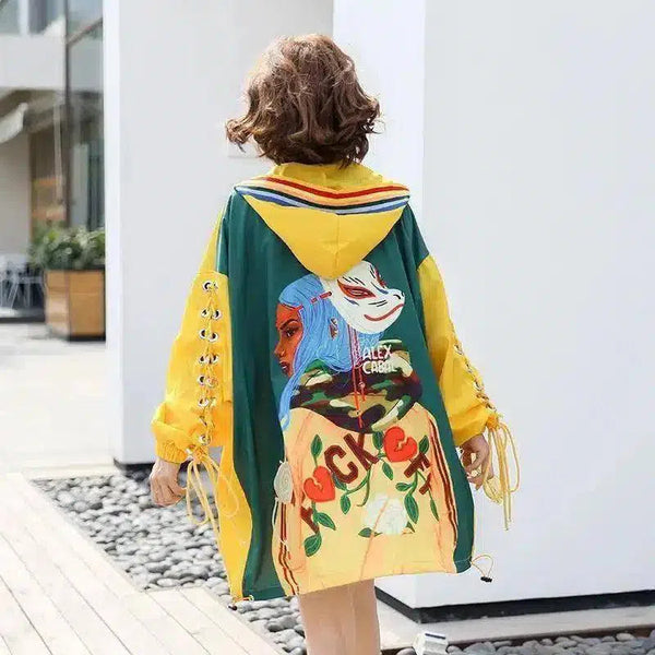 グラフィックプリント&袖レースアップフーデッドジャケット