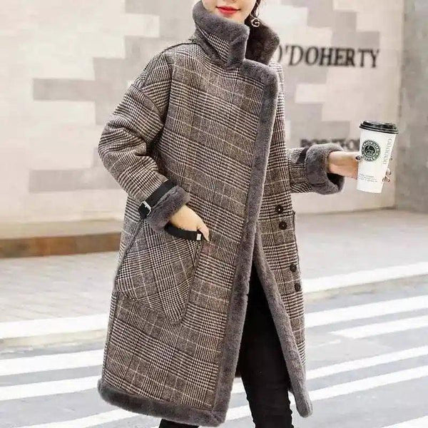 韓国気質+ベルベット厚手ミドル丈ウールコート