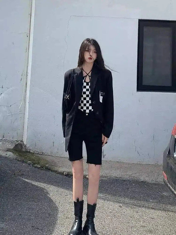 - 衣服の種類:ブレザーとショートパンツの女性用ツーピース・アンサンブル