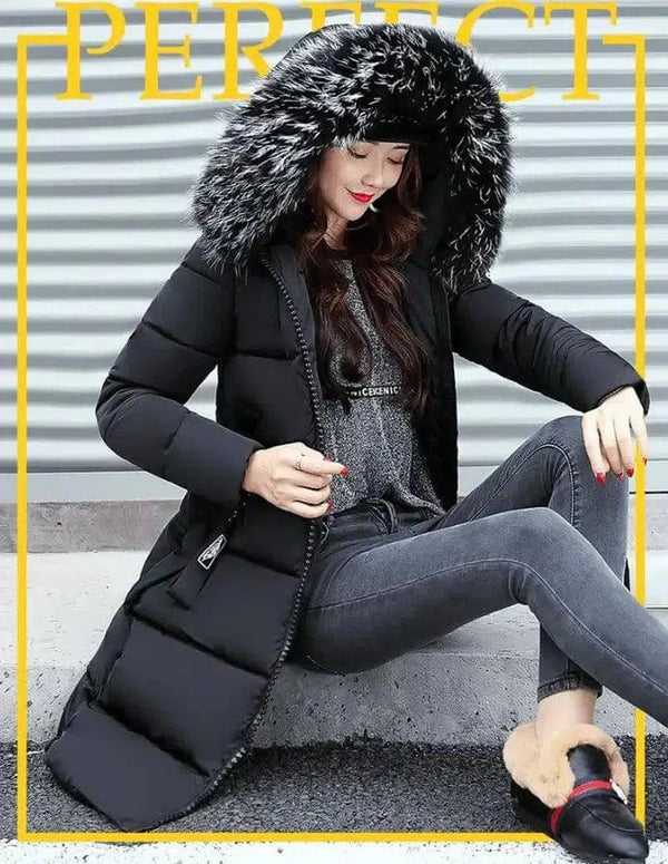 冬のエレガンス:韓国製ファーフード付きシックな中わたジャケット