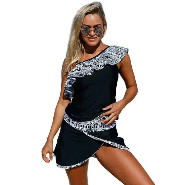 ジオメトリック柄フリルビーチスカートスプリット水着