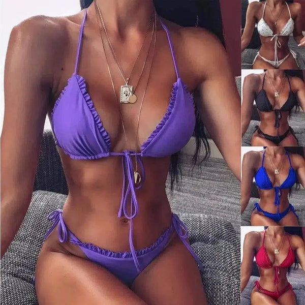 小さなフリルのスプリットプリント両面ビキニ