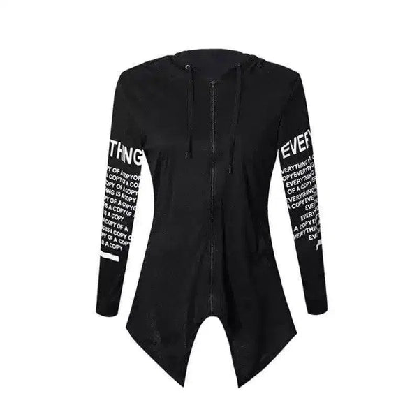 ジッパーフード付きアシンメトリックヘムトップス