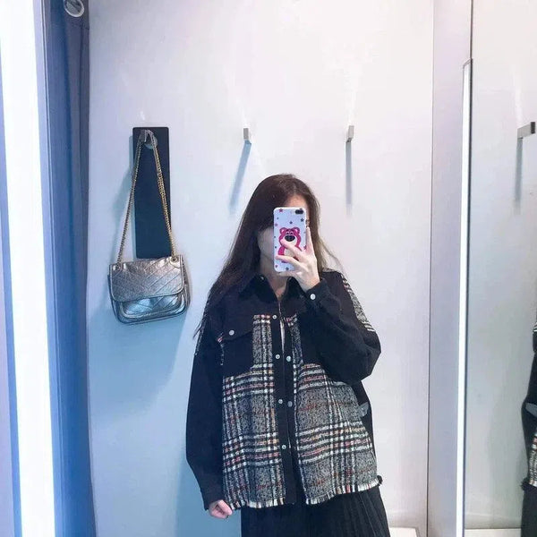 贅沢な質感と素材:上質なブレンドから作られたこのジャケットは、快適でソフトな感触を提供します。ソリッドなブラックのファブリックとツイードのようなパネルの組み合わせが、デザインに洗練されたテクスチャーを加えています。