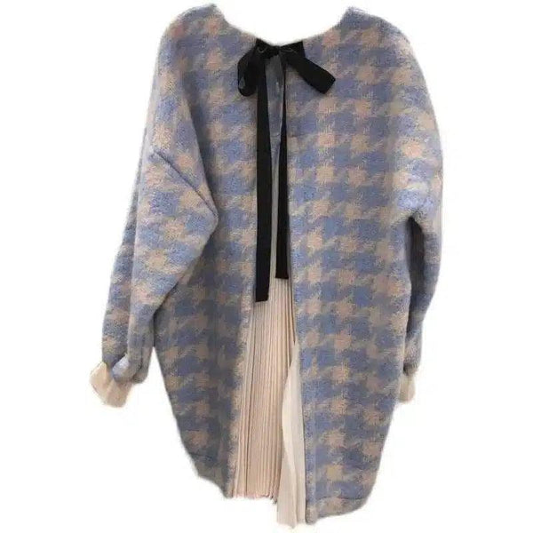 ファッションプリーツカラーマッチングステッチルーズボウタイレース