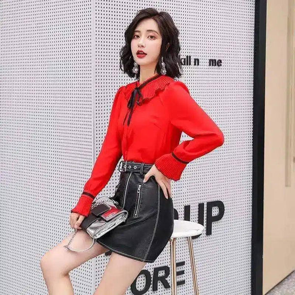 - 衣服の種類: ブラウス 袖丈: 袖口フリル付きの長袖