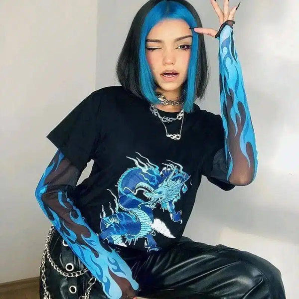 フレイムスリーブ・ドラゴン・グラフィックTシャツ