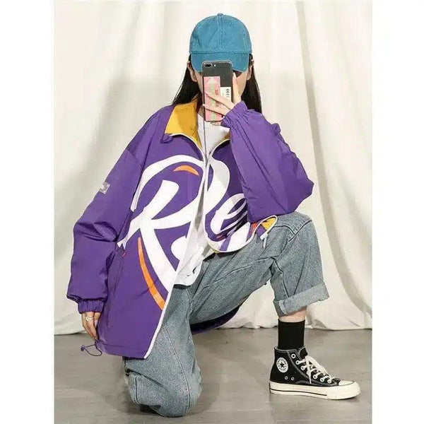 ロゴプリント入りユニセックスカジュアルスポーツジャケット