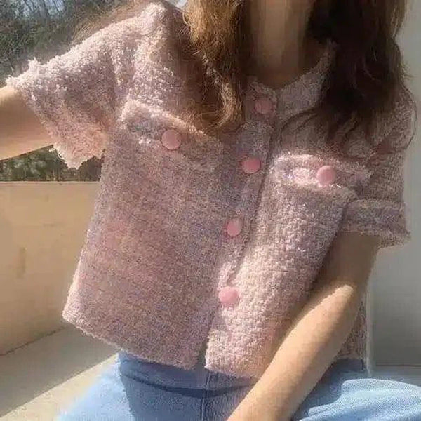 レディース・テクスチャード・ショートスリーブ・ボタンアップ・シャツ