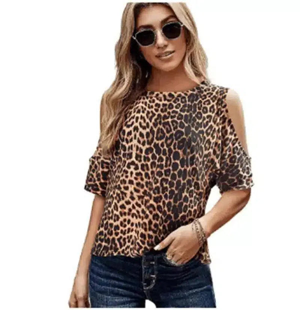 ウィメンズ レオパードプリント コールドショルダー トップス