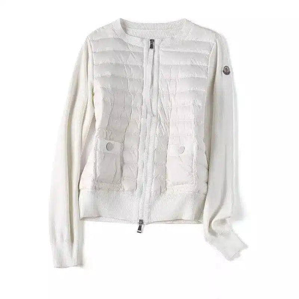 ポケット付きキルティング・ジップアップ・ニット・ジャケット