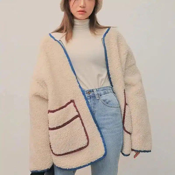 女性用ポケット付き暖かいフリースジャケット