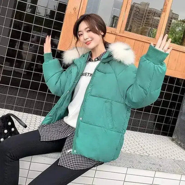 - ネックラインまたはショルダースタイル: フェイクファートリム付きフード付き