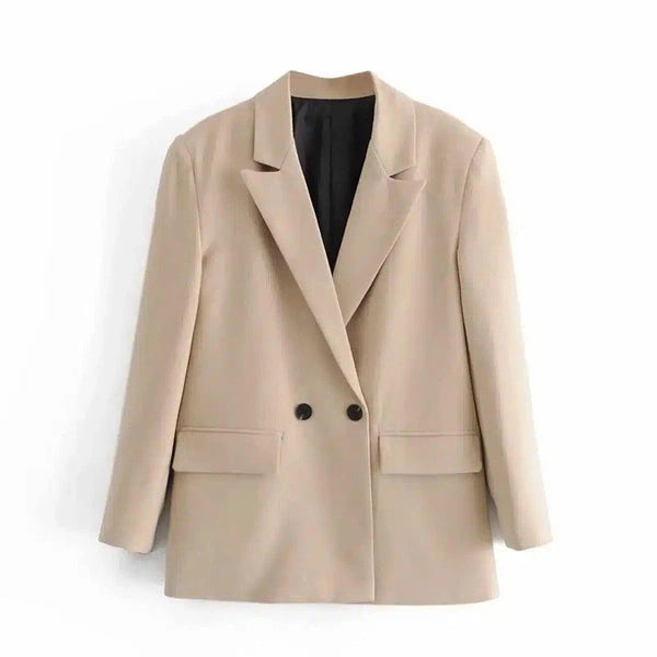 クラシカルなダブルブレストのブレザーでオフィスウェアに