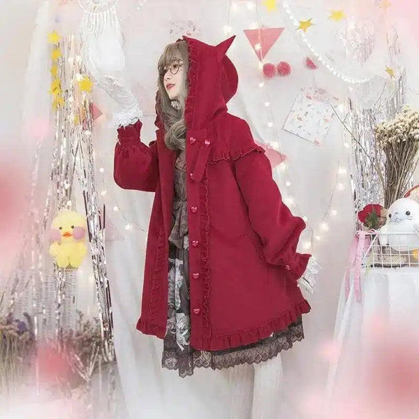 - ネックライン/ショルダースタイル: 蝶ネクタイで開閉するフード付き
