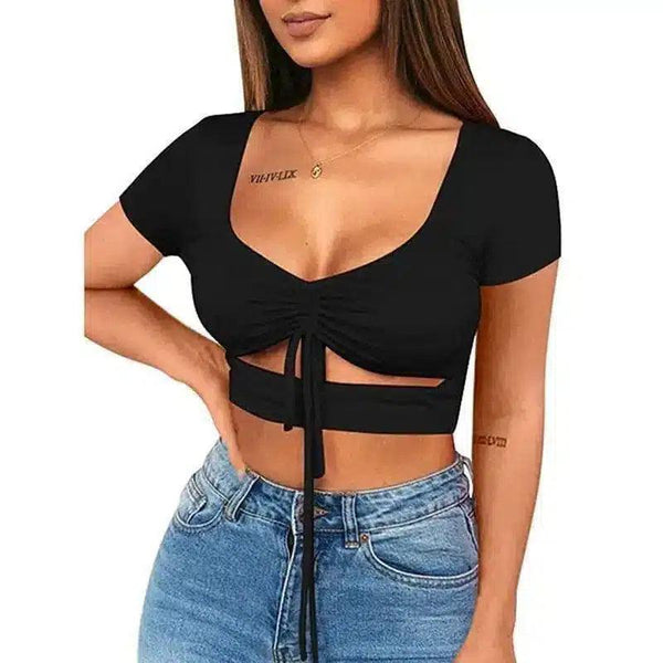 - 衣服の種類:女性用クロップドトップ 袖丈:半袖 ネックライン: スクープネック