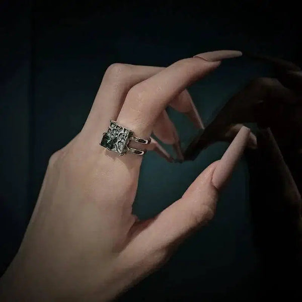 ヴィンテージシルバースクエアダークグリーンダイヤモンドS925スターリング