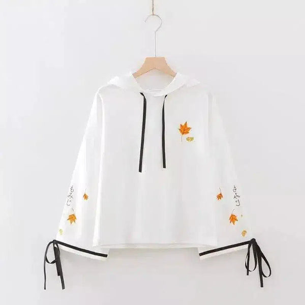 秋をテーマにしたフード付きレディス・カジュアル・トップ