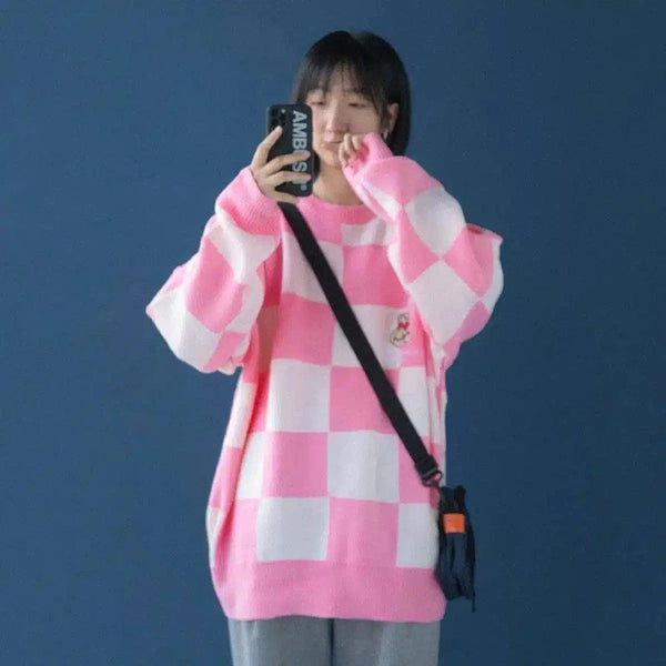 長袖オーバーサイズチェック柄セーター