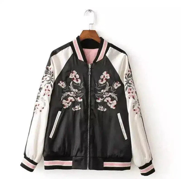 刺繍入り花柄ジッパー開閉ボンバージャケット