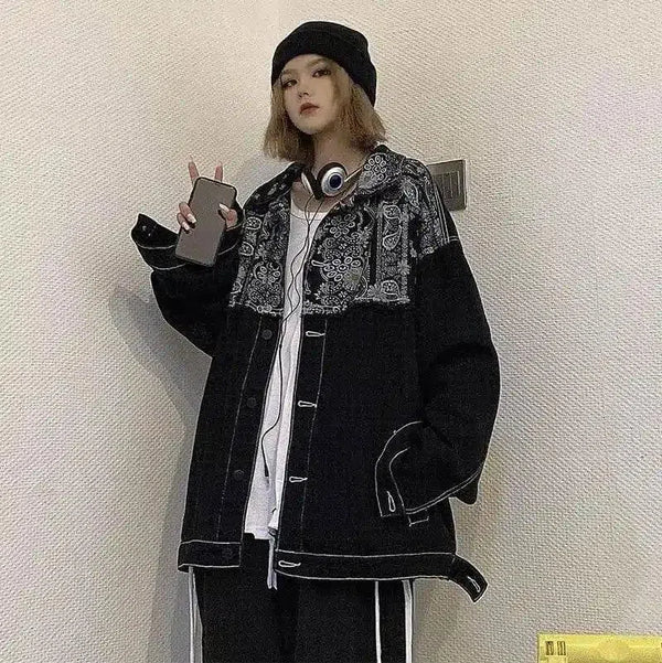 スタイリッシュなポケット付きオーバーサイズ・デニムジャケット
