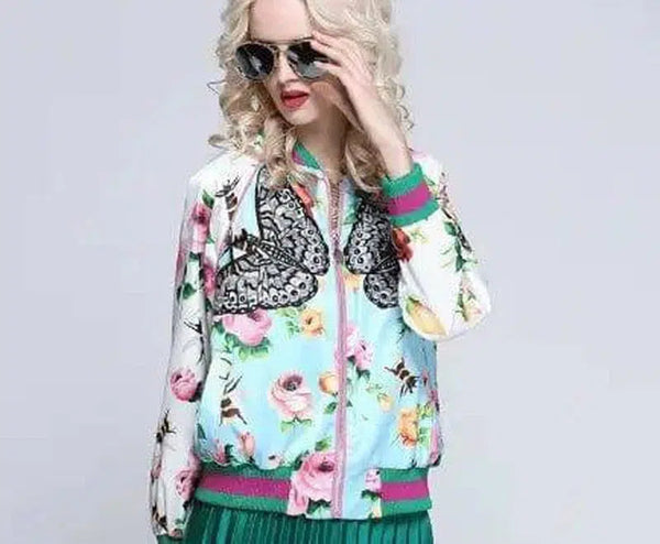 - フィット感:伸縮性のある袖口と裾でリラックスフィット デザイン デザインの特徴:蝶の装飾が施された花柄プリント