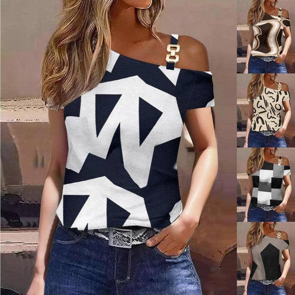 レディース サマー シンプル 半袖 メタル バックル プリント
