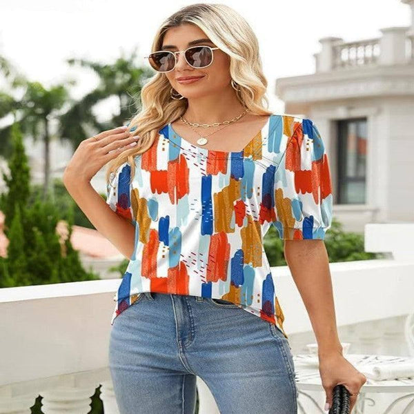 レディース 半袖 イレギュラー パフスリーブ ゆったり 花柄