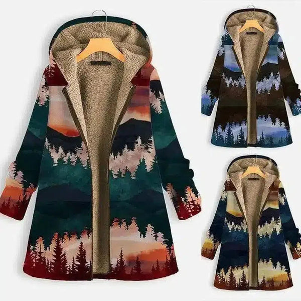- フィットまたはストレッチ:レギュラーフィット デザインの詳細::森と山の風景プリント