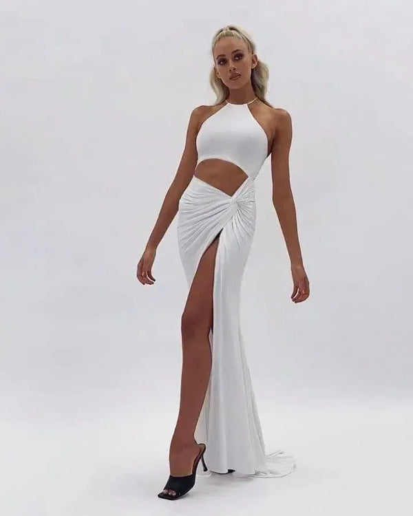 レディースファッションホルターネックカットアウトレースアップロングスカート
