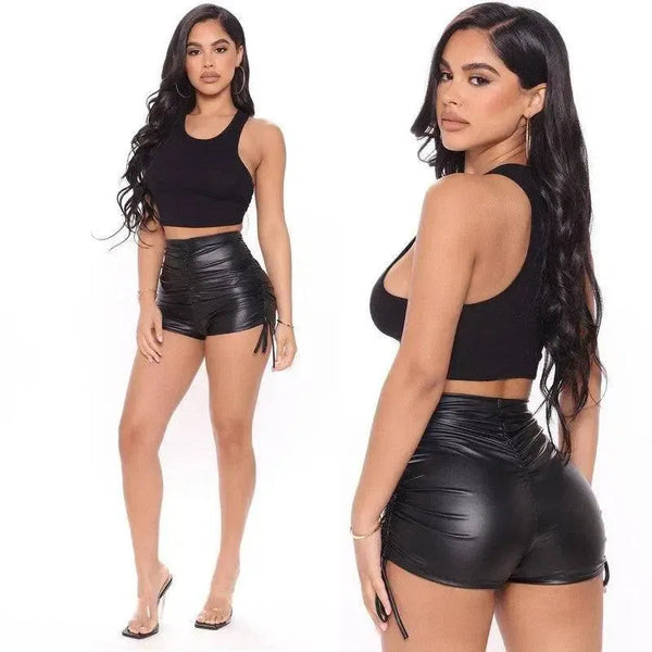 レディース・ファッション・タイト・プリーツ・レザー・パンツ