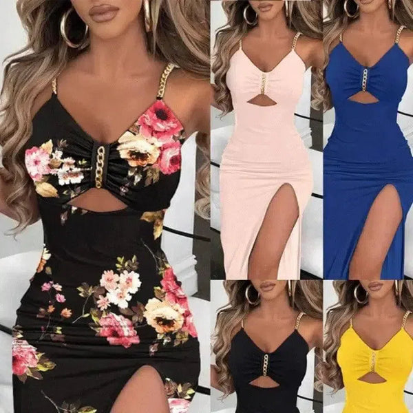 レディースチェーンショルダーストラップスプリットスリングドレス