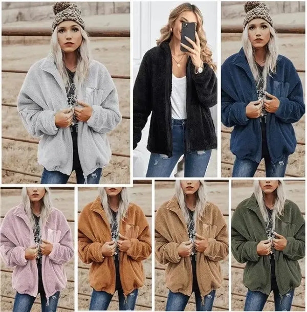 ファッション レディース ジッパー ルーズ 厚手 ウール コート