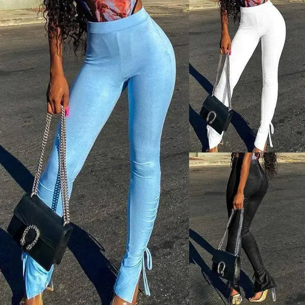 女性のファッショナブルなサイドスリットタイトハイウエストパンツ