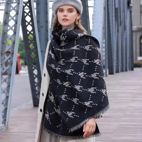 レディース・ファッション・プリント千鳥格子暖かマフラー
