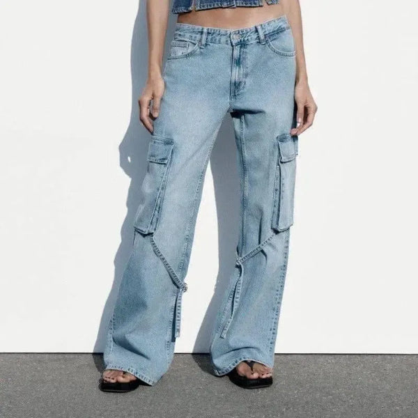 商品の説明:レディースファッションルーズストラップアクセサリーミッドウエストカーゴ