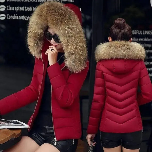 - ネックライン/ショルダースタイル: ファーで縁取られたフード付きのハイカラー