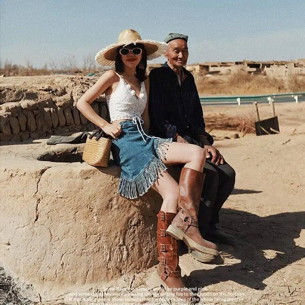 レディース・レトロ・イレギュラー・タッセル・デニム・スカート
