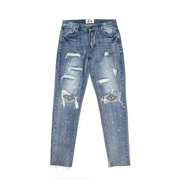 - ガーメントタイプ:シュレッドジーンズ 素材:デニムスタイル:カジュアル、ディストレスド フィット感:スリム/レギュラー