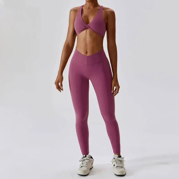 女性ヨガウェアセットアスレチックウェアハイウエストレギンス