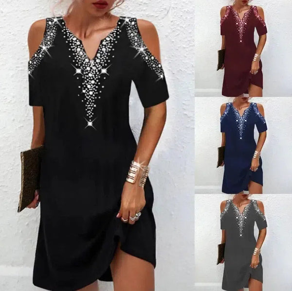 - スタイル:トレンディなオフショルダーデザインのレディースドレスです。