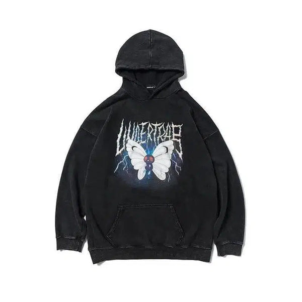 - フィット感: ストレッチ入りリラックスフィット デザイン デザイン詳細 蝶と太字のテキストが目を引くグラフィックプリント