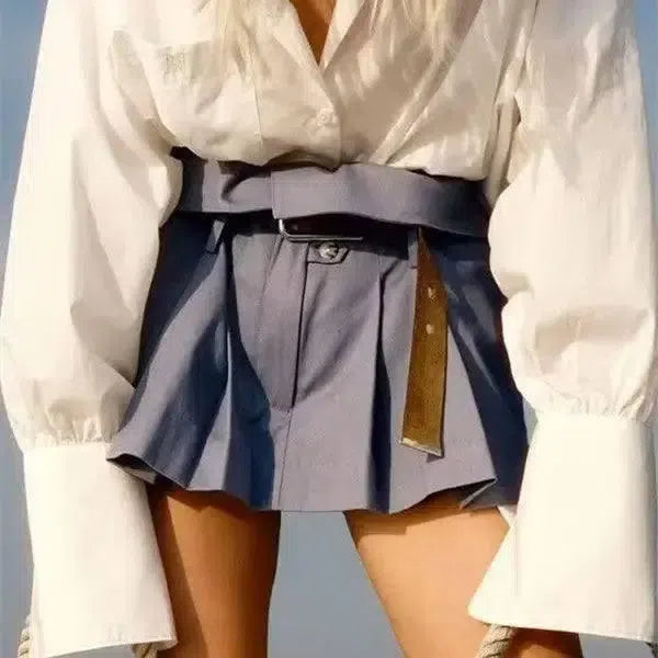 欧米スタイル カレッジスタイル ハイウエストプリーツ